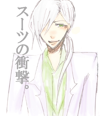 浮竹氏の問題のスーツ巻頭カラーを見た直後に描いたものです。